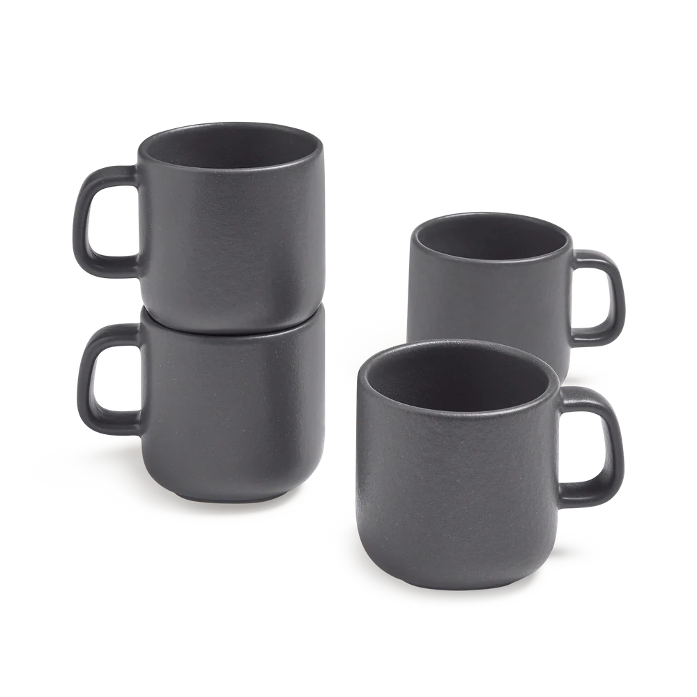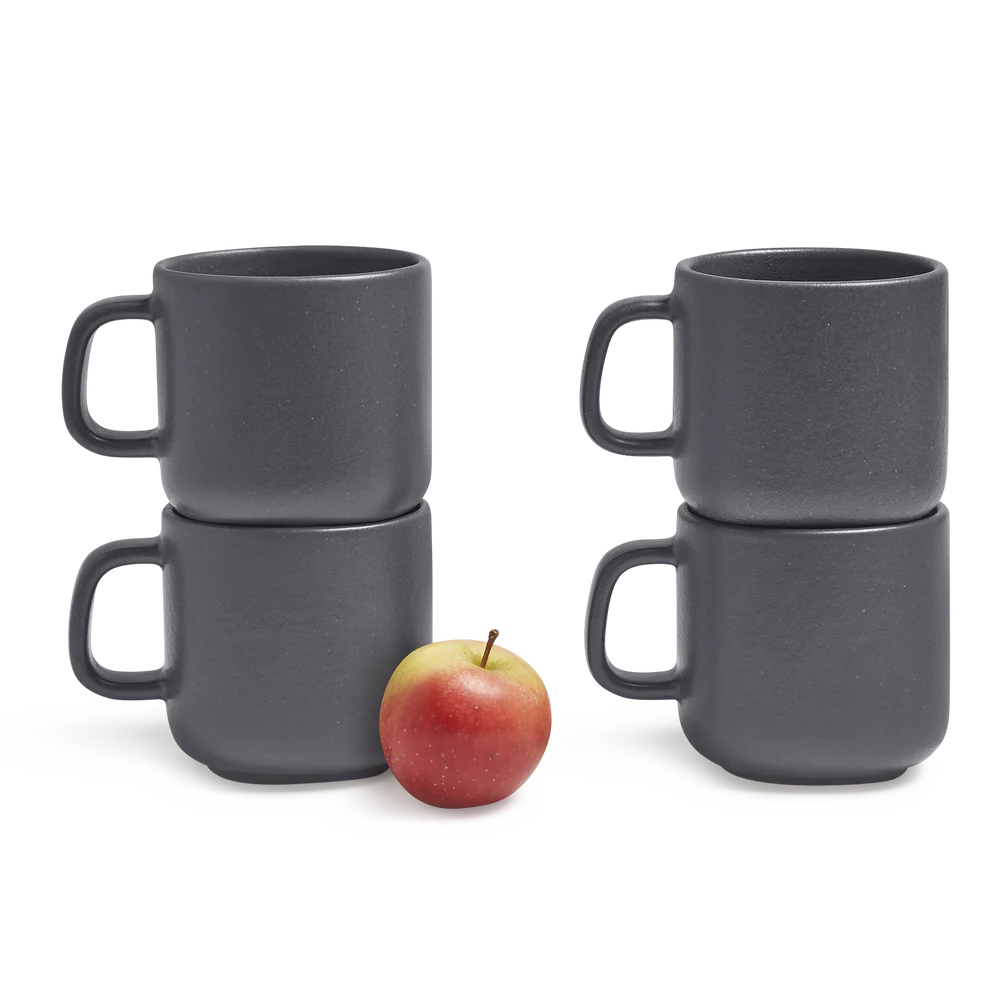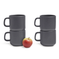 Set of 4 Stackable Ceramic Mugs – Dark Gray
