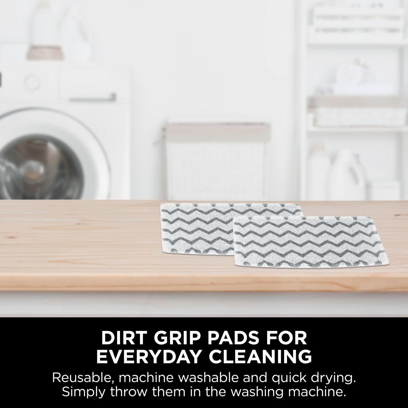 - Washable Dirt Grip Pads: Forget the cost and hassle of disposable floor wipes. Sharkâ€TMs absorbent Dirt Grip cleaning pads are reusable, machine-washable and easy to attach.